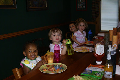 Tuesday morning, we headed to the zoo. Here the grandbabes are trying to wake up a sleeping Boppa, who stayed overnight on the air mattress. Reminds me of the Saturday mornings from my childhood when my sisters and I would all run into my parents' room and jump on him trying to wake him up.